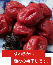 梅干しに多量に含まれるクエン酸には、疲労回復や、老化防止の効果があります。紫蘇には、防腐作用や、抗酸化作用があり、最近では防臭や、血中のアルコール分解促進作用が報告されています。 |